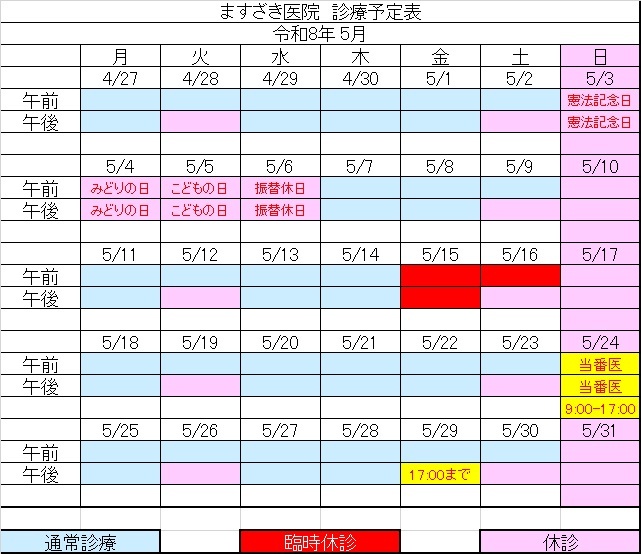 令和8年4月10-11日は福岡大学病院へ出張のため休診します。ご迷惑をおかけしますがよろしくお願いします。